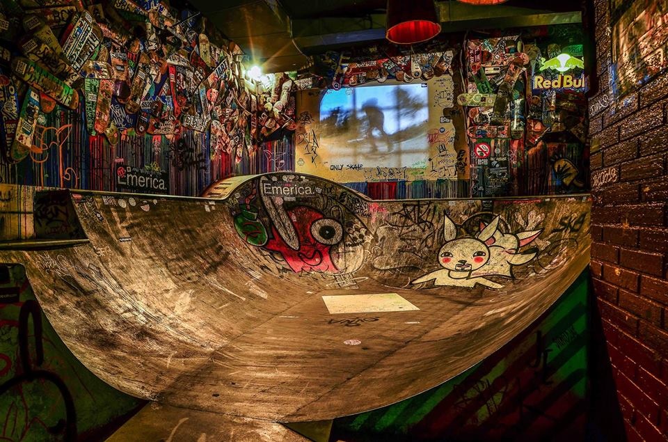 À l'intérieur, attendez-vous à une ambiance underground avec une véritable rampe de skate, une machine d'arcade rétro et des murs ornés de graffitis artistiques. Le tout est accompagné de musique grunge et rock des années 90, ponctuée de hits rétro des années 80 pour les amateurs de danse.